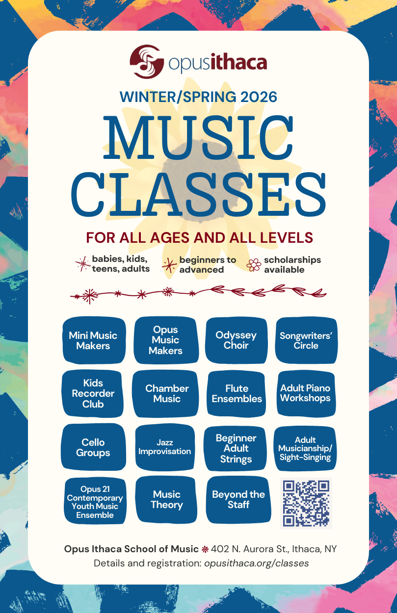 Opus Ithaca School of Music is a non-profit music school located in St. Paul’s United Methodist Church at the corner of Court and Aurora Streets in downtown Ithaca. We strive to create a positive environment for all to study and appreciate great music!