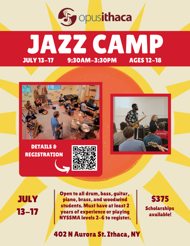Join us for a week of jazz, improvisation, jazz history, listening, and all things jazz! We will have introductory-level groups, as well as more advanced groups, based on experience and ability. Faculty will include Paul Merrill, Peter Chwazik and Melissa Gardiner. Jazz Camp 2026 guest artists will be announced later in the spring.